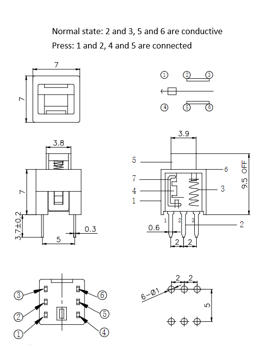 No IP RatingMini Type Power Button Switch High/Flat Head Double Row 6pin 7x7 Self Locking Switch