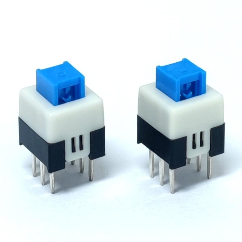 This 7x7 non-locking tactile switch features a compact 7x7mm footprint, 6-pin through-hole design for easy PCB soldering, and a blue actuator for clear visual feedback. It is a cost-effective alternative to ALPS, C&K, and Digi-Key stocked 7x7 push button switches, with consistent quality and flexible MOQ for bulk orders. Whether you need 7x7 self locking push button switches for latching control or 6 pin momentary push button switches for momentary operation, this through-hole tactile switch delivers reliable performance for your projects.