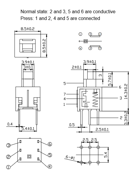 Recommended PCB Pad Layout: Provide standard pad design for 8.5x8.5mm 6-pin switch, downloadable for engineers