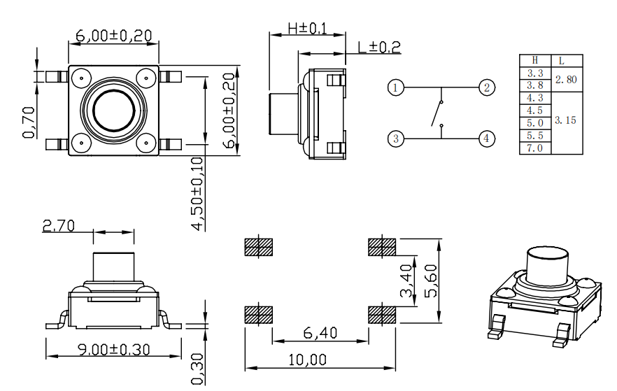 Compact & Precise (6×6 mm) - Space-saving design fits seamlessly into tight layouts while maintaining responsive tactile feel for accurate user input.