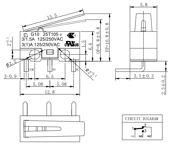 The 12.8×5.8mm microswitch is a cost-effective medium-compact option. Its core advantages include: a size that