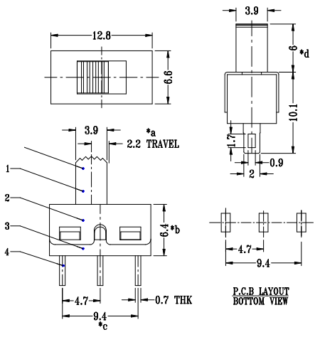 The 1P2T Toggle Switchis a single-pole double-throw (SPDT) control switch that toggles one circuit between two states (e.g., on/off, mode selection) via a rocking operation. It supports two installation types: solder terminals (for PCB direct soldering) andplug-in terminals (for panel mounting)
